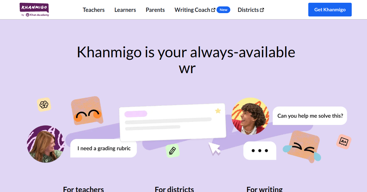 AI tutor and teaching assistant built on GPT-4 by Khan Academy. Guides students through problems Socratically, helps teachers create lesson plans, and provides personalized explanations.