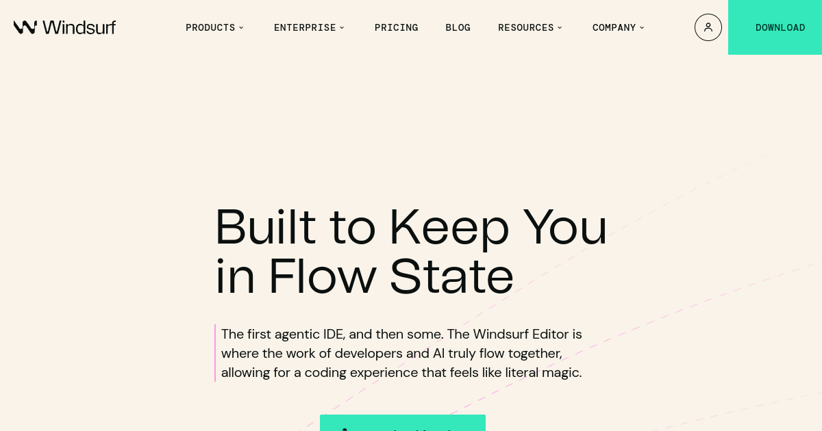 The agentic AI IDE that introduced 'Cascade' — an AI that can autonomously take actions across your codebase. Ranked #1 AI code editor for long-horizon tasks. Free tier available.