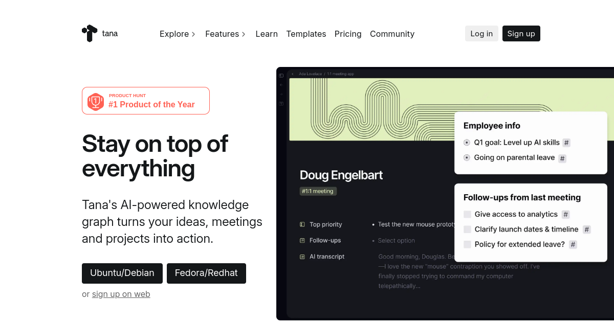 AI-powered note-taking tool that puts your notes to work. Voice input, powerful supertags, and AI that connects ideas across your workspace. Won Product of the Week multiple times in 2025.