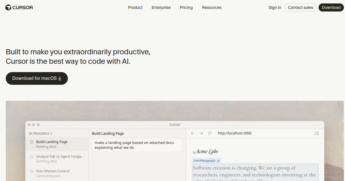 The AI-first code editor built on VS Code that became the 2024 Product of the Year on Product Hunt. Understands your entire codebase, writes multi-file edits, and debugs with context. Millions of developers switched from VS Code.