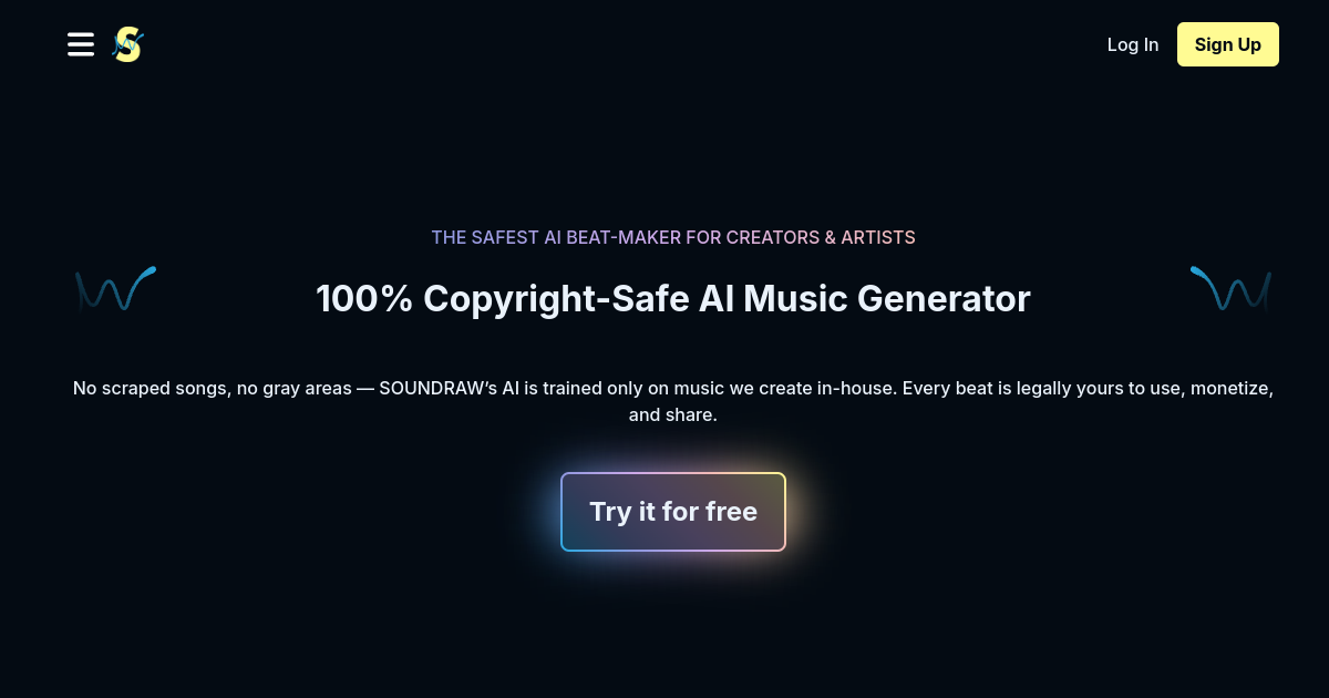 AI music generator for video creators. Customize song structure, instruments, and mood — then tweak section by section. Every track is 100% royalty-free and exclusive to your use.