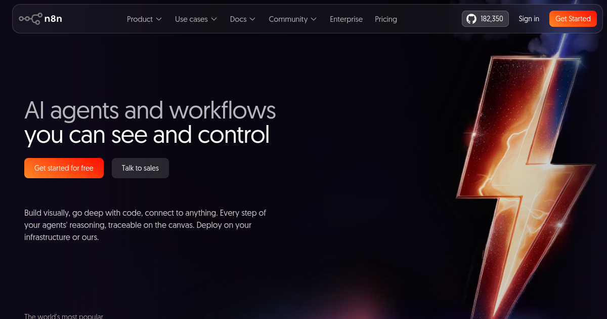 Source-available workflow automation with native AI nodes. Build complex AI workflows that connect to 400+ services — Slack, Google, GitHub, databases — with LLM-powered logic at every step.