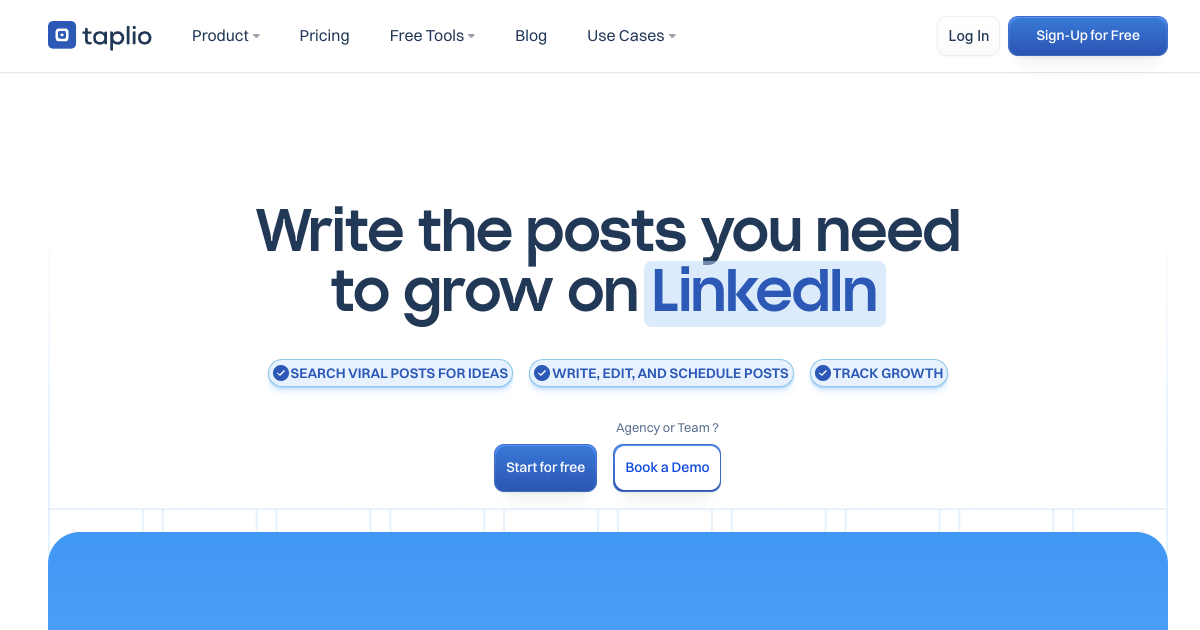 AI-powered LinkedIn growth tool trusted by 6,000+ creators and founders. AI content generation, scheduling, engagement automation, and analytics built specifically for LinkedIn thought leadership.