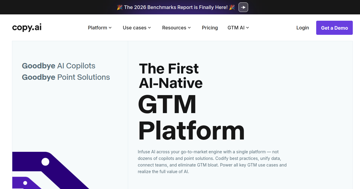AI copywriting platform with 90+ content templates for every marketing need. Landing pages, email sequences, social posts, and ad copy generated in seconds. Used by 10M+ marketers.