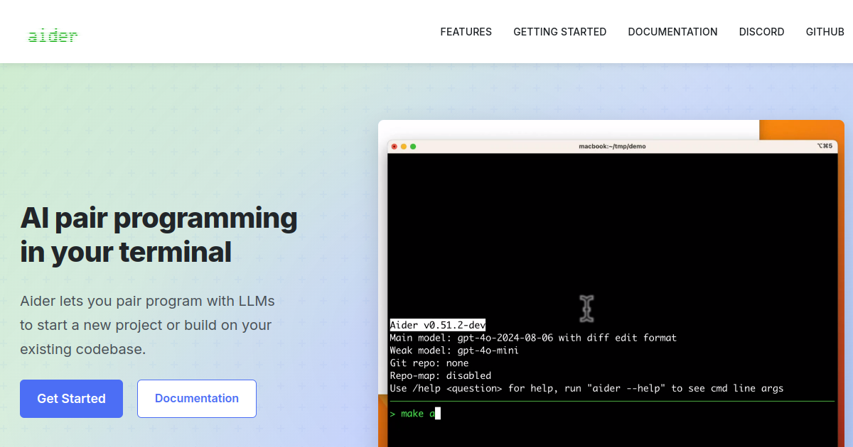 AI pair programming in your terminal. Works with your existing git workflow — describe changes in plain English and Aider writes, tests, and commits the code. Supports all major LLMs.